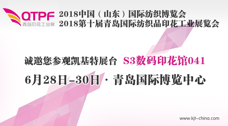 您好!感謝您一直以來對我們的支持。南京凱基特電氣有限公司將于2018年6月28日-30日參加在青島國際博覽中心舉行的2018第十屆青島國際紡織品印花工業(yè)展覽會。屆時(shí)歡迎您的來訪!