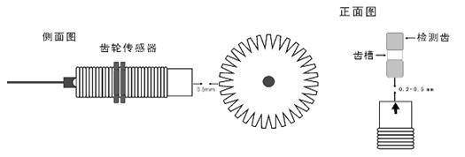 ◆ 安裝時(shí)傳感器的方向標(biāo)志線及檢測面要正對齒輪的中心。